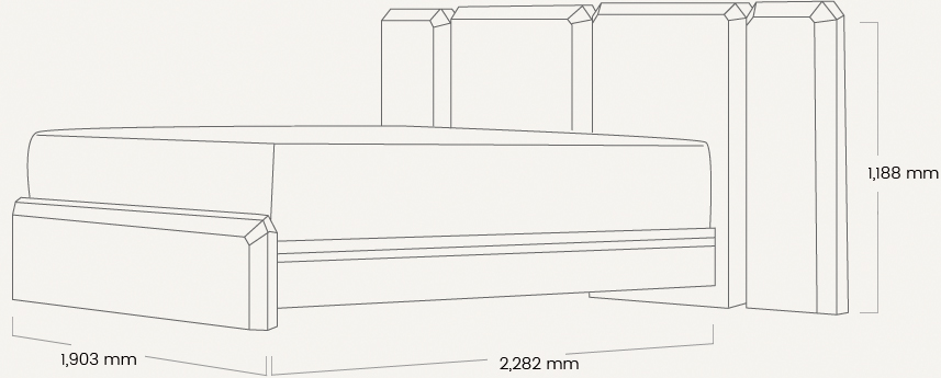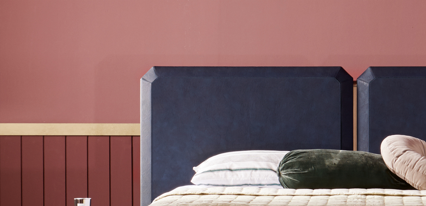 헤드보드와 사이드판넬, 백보드에 동일한 디자인 프로파일을 적용해 통일감과 유니크함을 강조하였습니다.