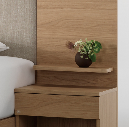 옵션으로 사이드 판넬과 동일한 마감이 적용된 협탁을 함께 배치하면 실용성 높은 공간 연출이 가능합니다.