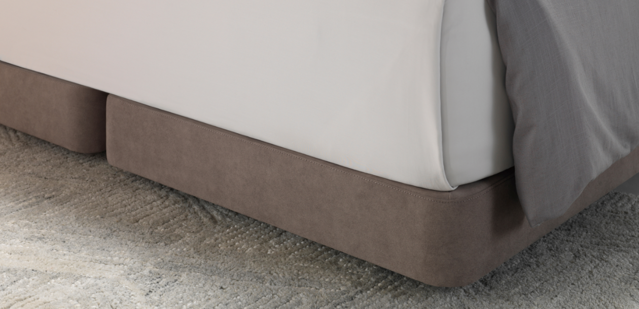 볼륨감을 강조한 패브릭 헤드보드 쿠션이 특징인 프리미엄 모델