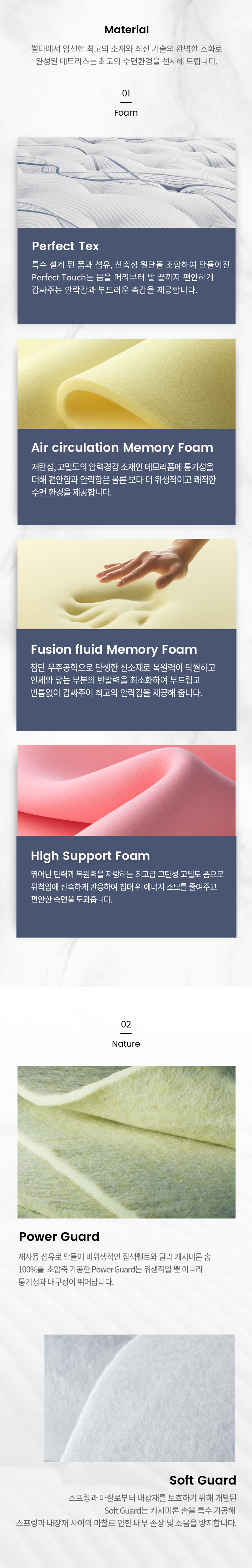 스프링과 마찰로부터 내장재를 보호하기 위해 개발된 Soft Guard는 캐시미론 솜을 특수 가공해