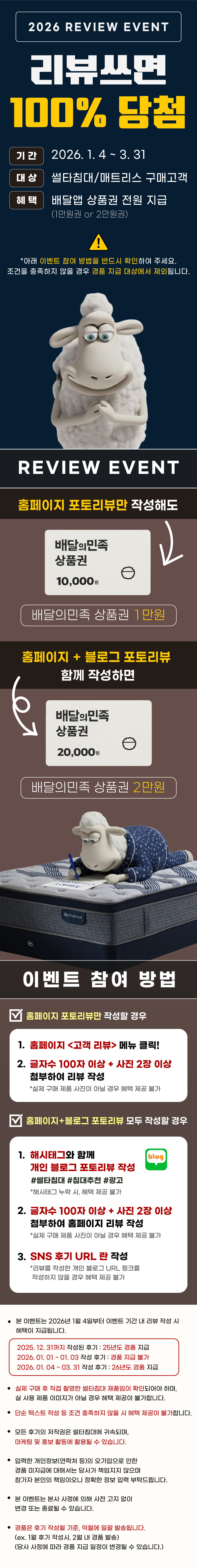<2026 NEW REVIEW EVENT> 썰타침대 구매 후 포토리뷰 작성하면