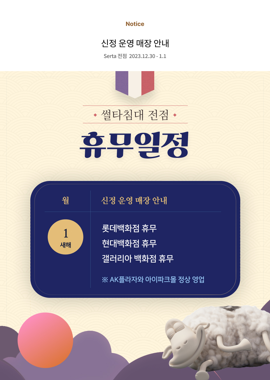 썰타침대 전점 휴무일정